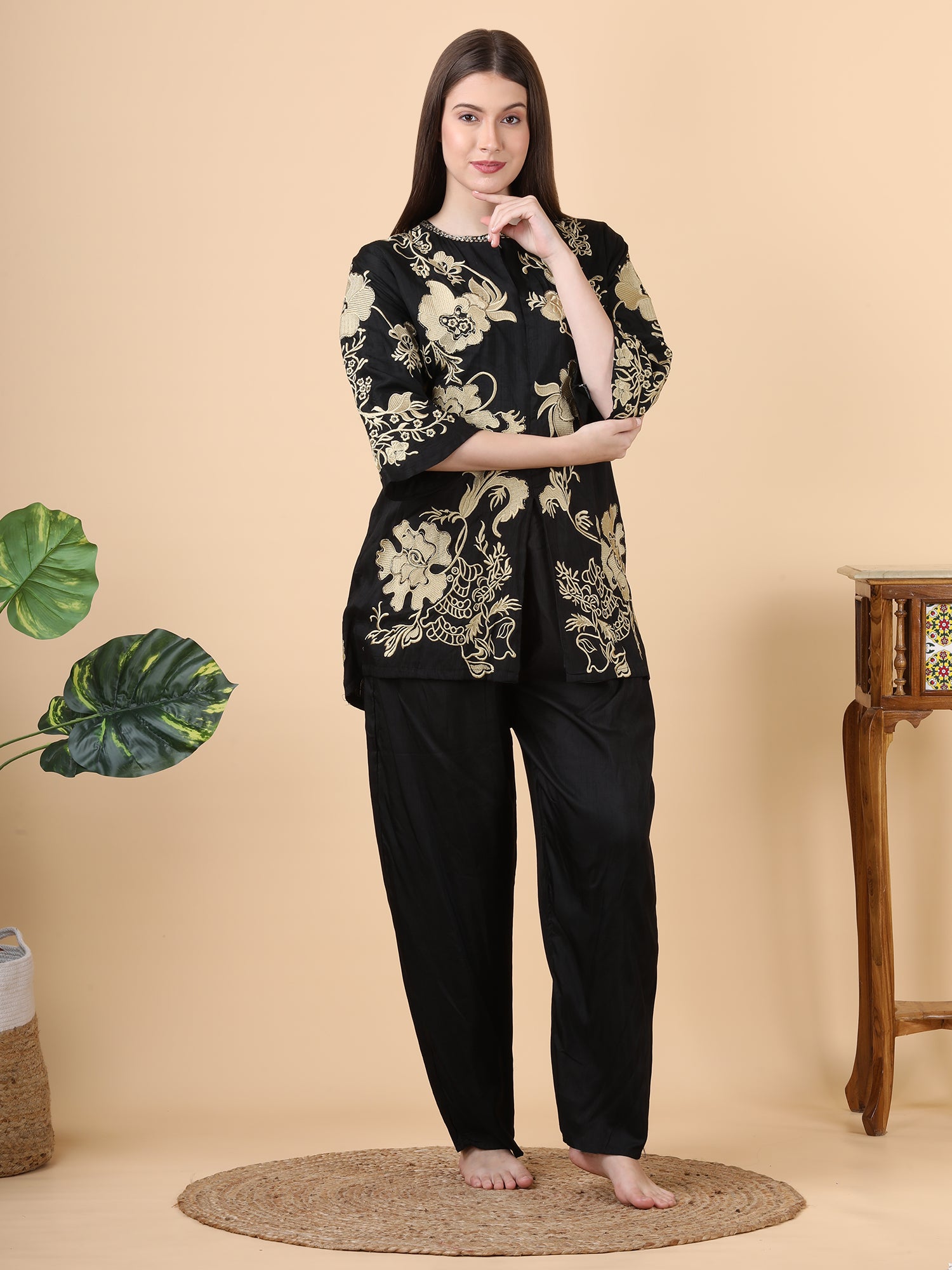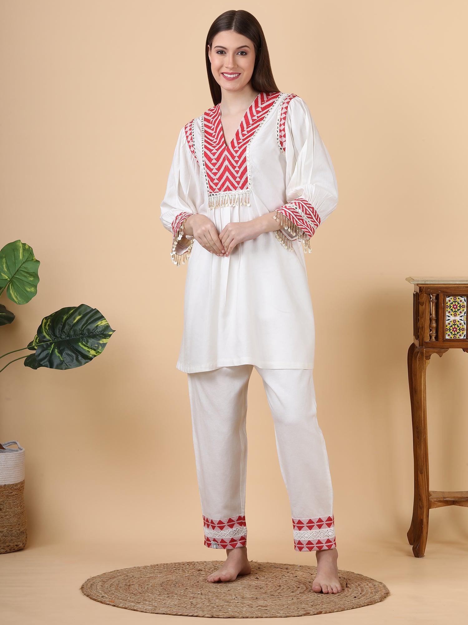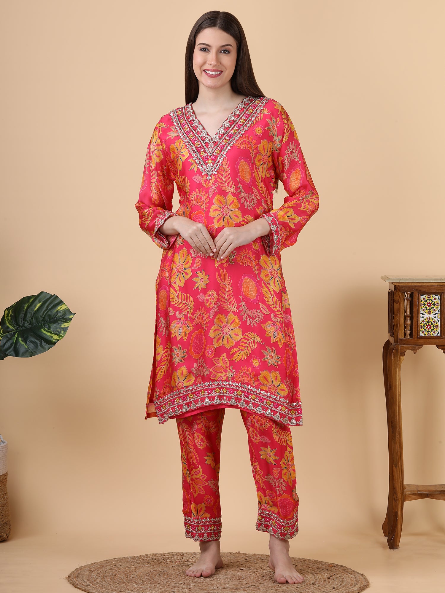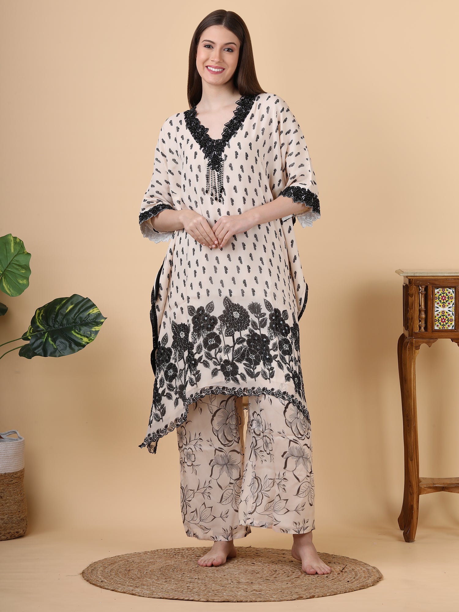 FABRIC- shimmer crepe EMBROIDERY-mirror , gota DESIGN PATTERN-kaftan WITH-pants