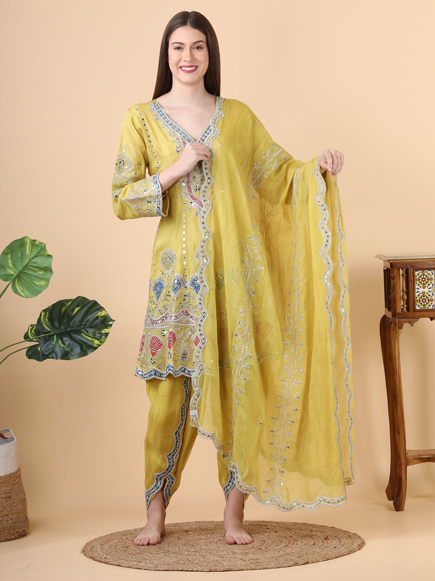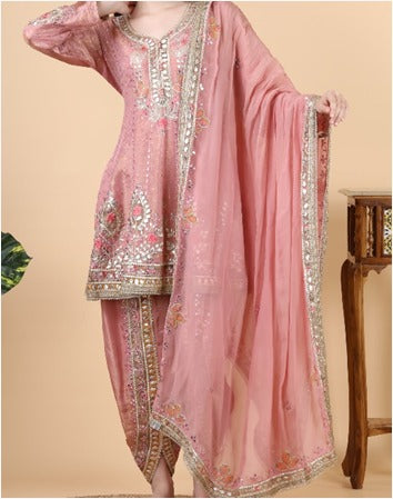 FABRIC- silk EMBROIDERY-pearls,handwork,shells DESIGN PATTERN-pants style WITH-dupatta