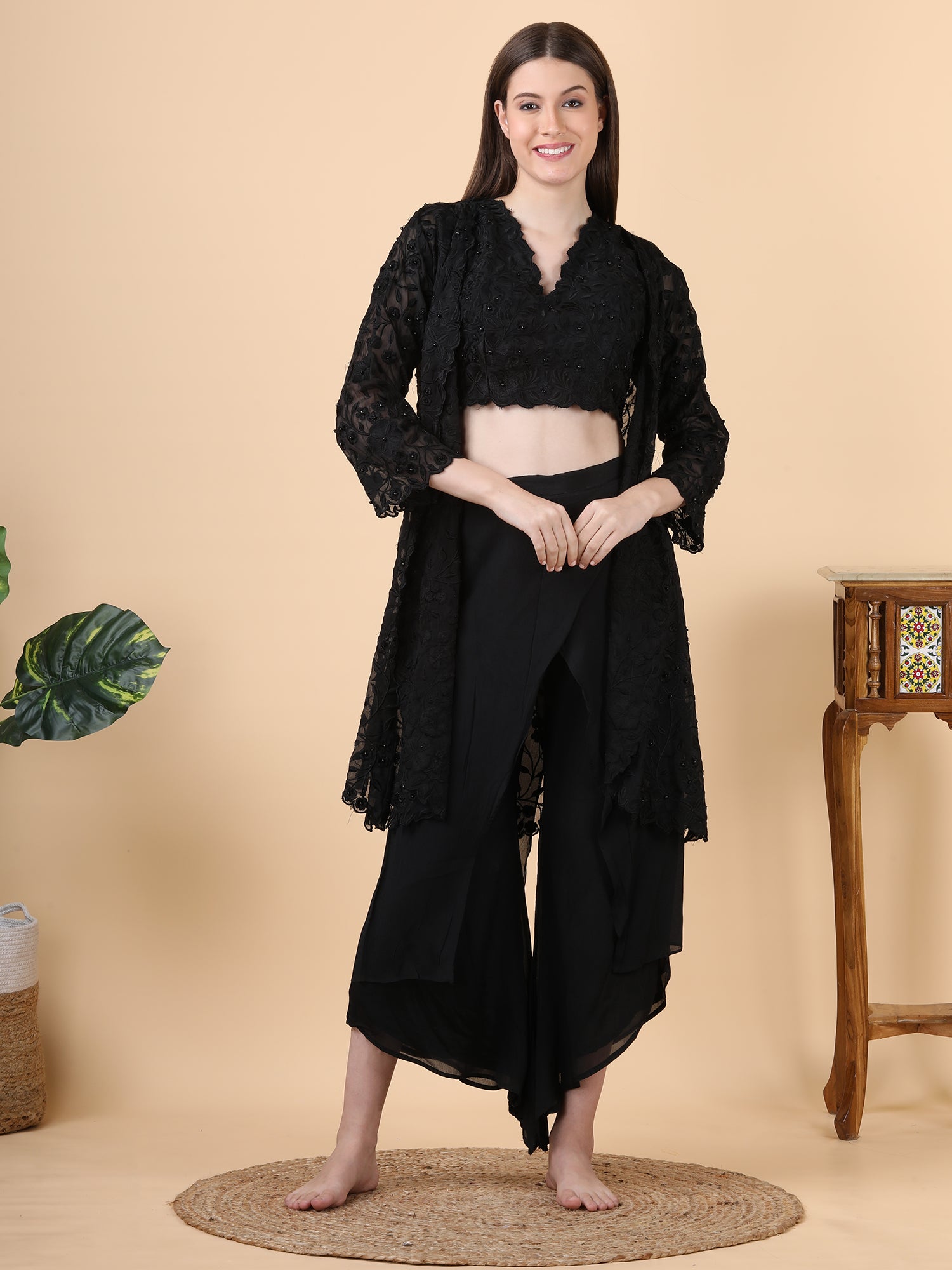 FABRIC- orgenza EMBROIDERY-thread,sequence,wire DESIGN PATTERN-3 piece WITH-sharara jacket