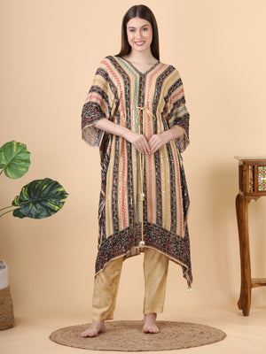 Discover understated elegance with our kaftan-style outfit, featuring a sophisticated blend of brown and black shades, paired with matching pants. This ensemble offers a rich, multi-tonal look that combines modern style with classic charm, making it perfect for both formal and casual events.